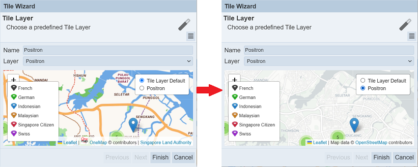 The steps in the wizard vary for the different types of map layers. For example, to create a heatmap layer, only three steps are required; namely the Tile Layer, Map Type and Heatmap Layer Map. Skipping the tooltips, pop-ups and info items steps.