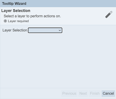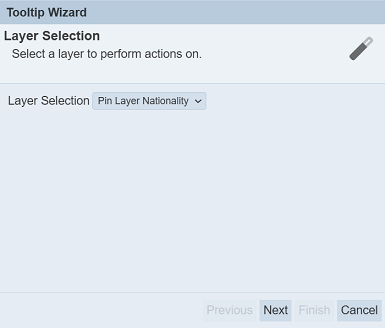 Select the desired layer that need to edit the tooltip from the drop-down list in the “Layer Selection” field. Click on the “Next” button that appear at the bottom right of the wizard.