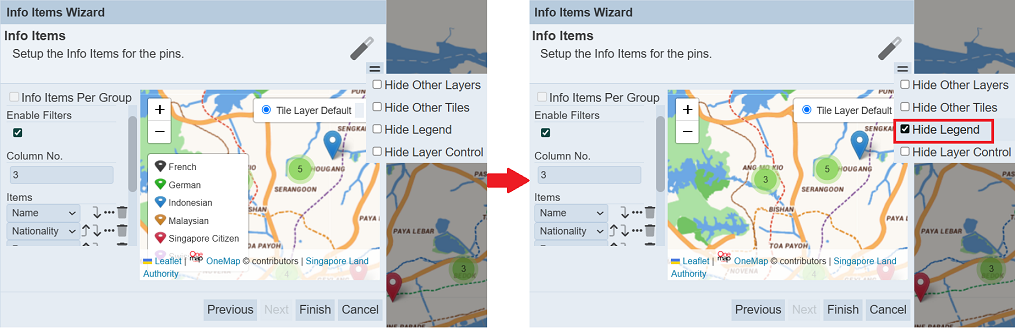 Select the desired option. If you wish to hide the legend, select the “Hide Legend” option and the in the GIS view will disappear.
