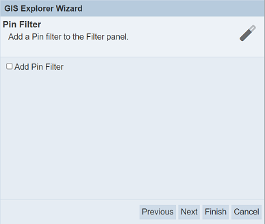 This step allows you to add a pin filter onto the Filter panel in the GIS Explorer.