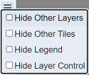 The options allows you to hide layers, tiles, legend and/or layer control in the GIS view. For example, as the GIS view is small, it may make sense to hide the Legend and Layer Control. Any selection in these option will not affect the GIS Explorer.