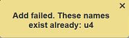In the event where the new user to be added conflicts with the existing user in the list, an error message will appear and the action will be aborted.
