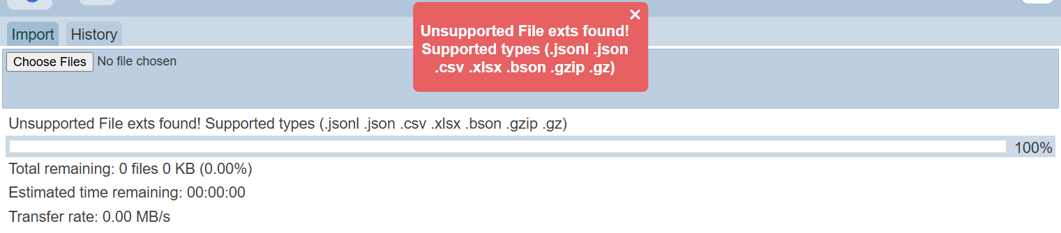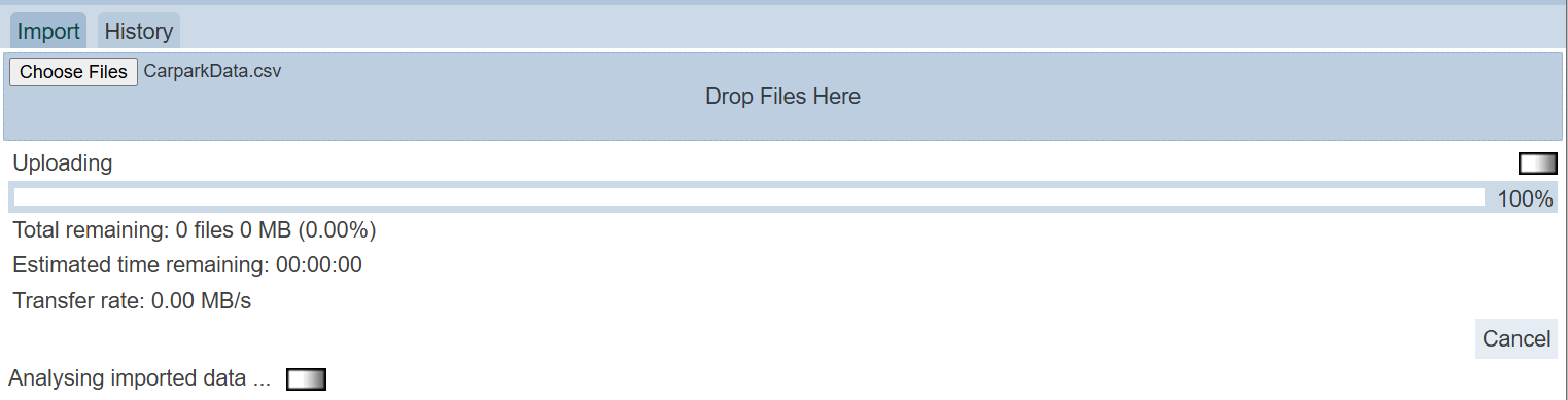 The progress of the upload is displayed in the page. If the size of the data file is too small, the progress page may not noticeable.
