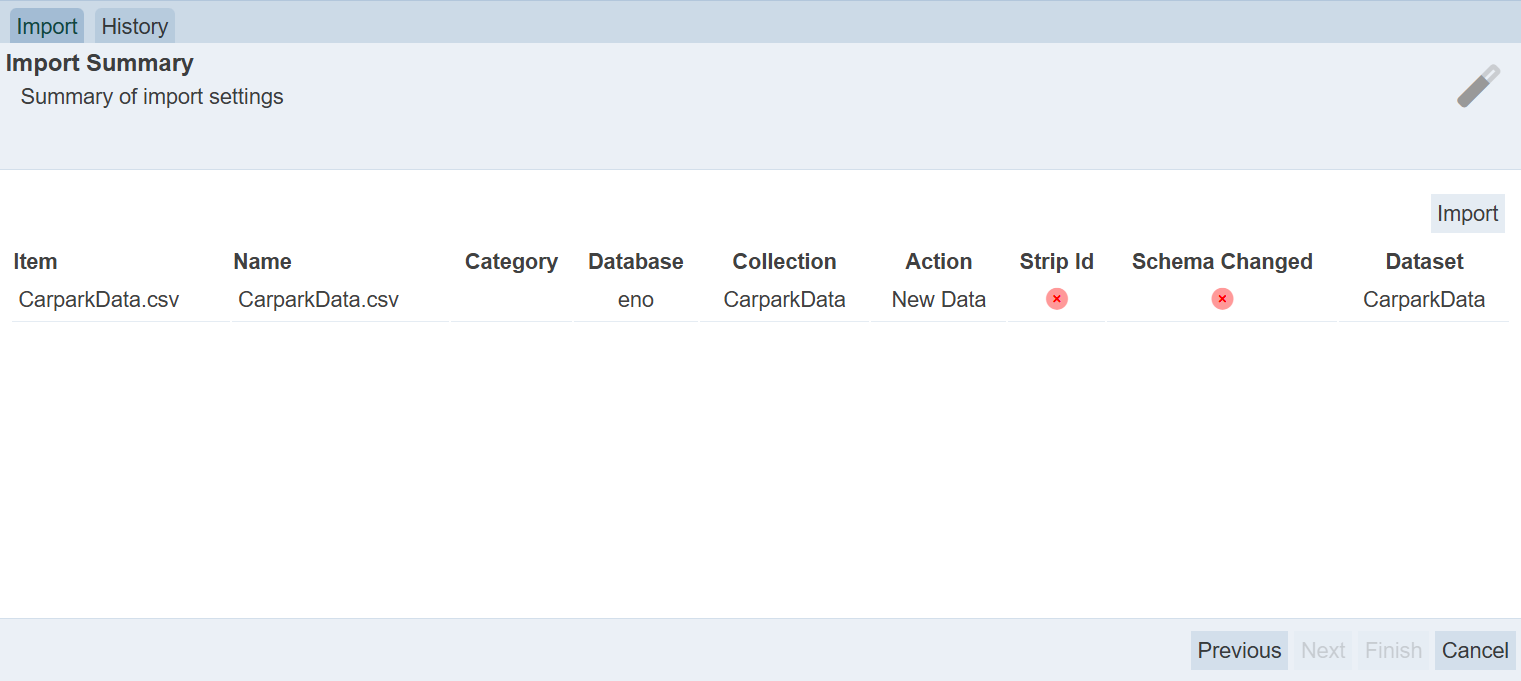 The next page shows you the summary of the import settings. To change the settings, click on the “Previous” button at the bottom of the page. To proceed with the import process, click on the “Import” button at the upper right of the page.
