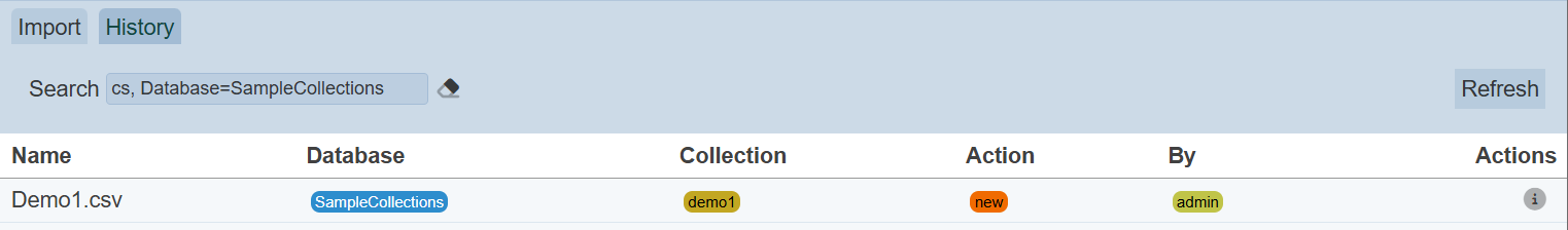 In the example above, the import that is stored to the database “SampleCollections” is shown.