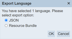 For the JSON option, one or more languages can be selected to export. While for the Resource Bundle option, only one language can be selected at one time.
