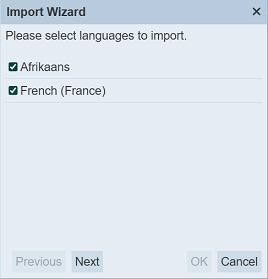 The first page of the import wizard displays all the available languages in the selected file. By default all languages are selected. Select or unselect the languages as desired and click on the “Next” button.