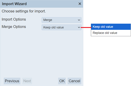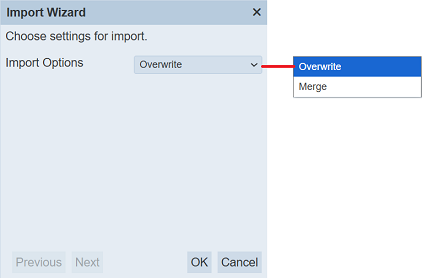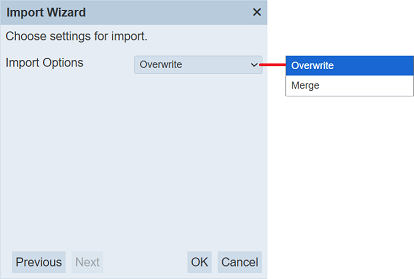 In the “Import Options” field, select the desired option from the drop-down list. If “Overwrite” is selected, no other fields need to be defined.