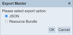 There are two options available. One is JSON format and the other is Resource Bundle. By default, JSON is selected. Select as desired and click on the “OK” button to export the master text.
