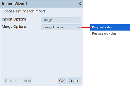 In the “Import Options” field, select the desired option from the drop-down list. If the “Overwrite” option is selected, no other fields need to be defined.