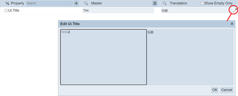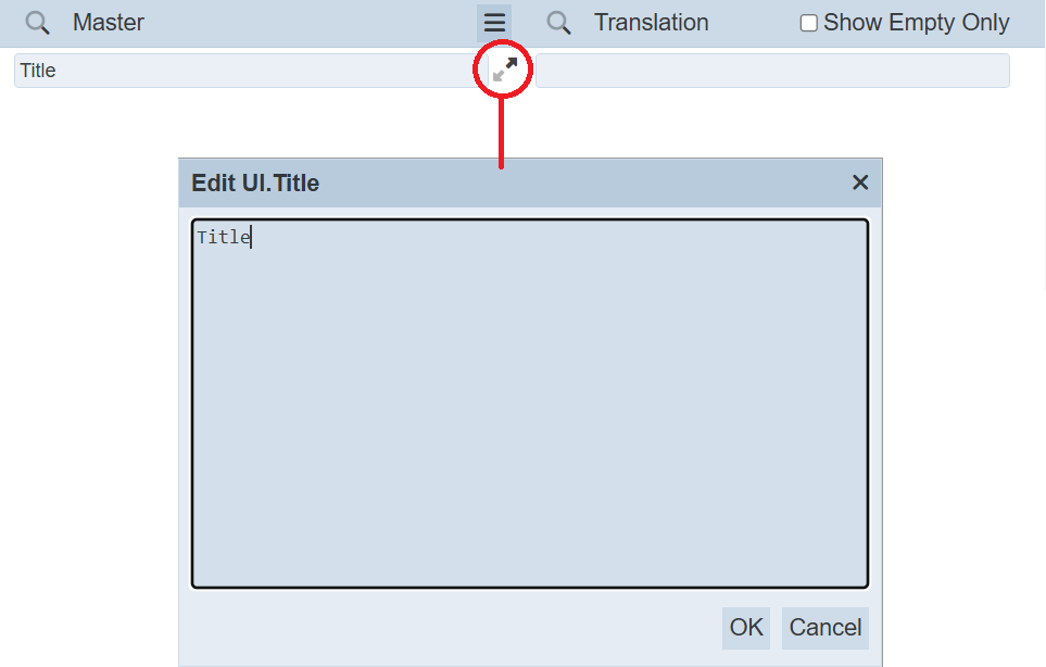 | “Show Empty Only” checkbox | When selected, will display only rows that has no translation (i.e., empty). |
