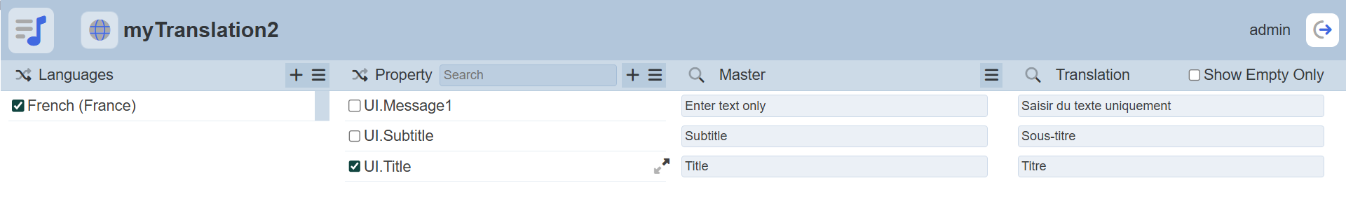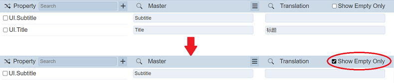 The “Show Empty Only” checkbox at the title bar when selected, displays rows that does not have translations.