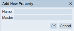 Key in an unique property name in the “Name” field. In the “Master” field, enter the master data (optional). Click on the “OK” button to save the property or click on the “Cancel” button to abort the action.