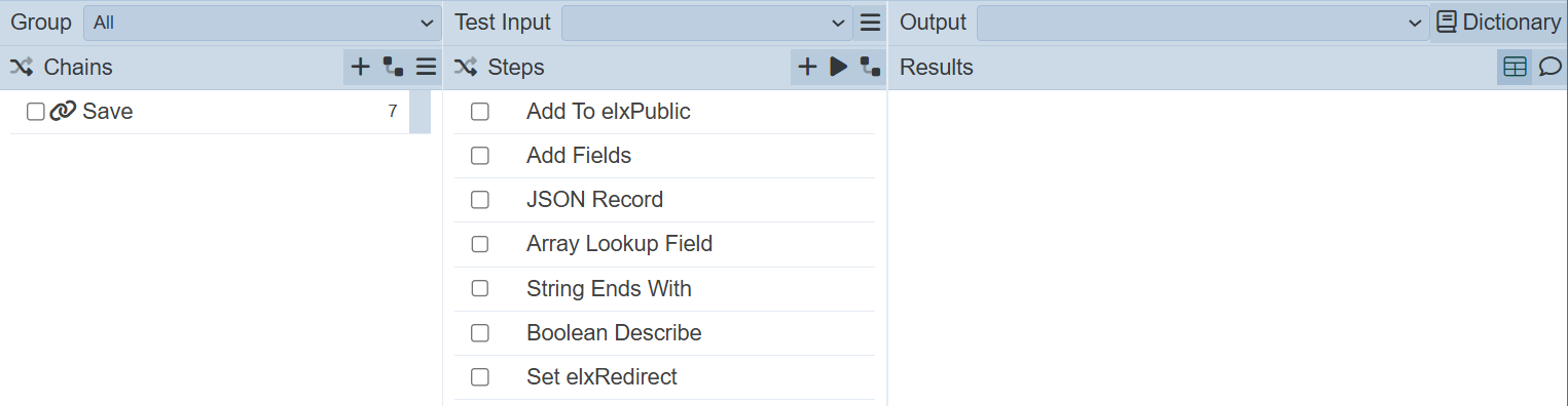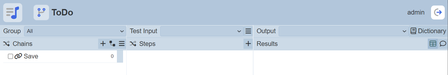 In the ETL module, create a ETL chainset named “ToDo”. Open the ETL chainset, add a new ETL chain named “Save”.