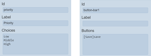 Edit the properties of the Select and ButtonBar components as per the screenshot below.