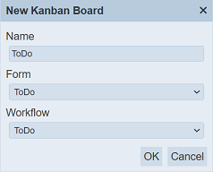 In the Kanban module, create a Kanban board named “ToDo” and select the form and workflow created above.