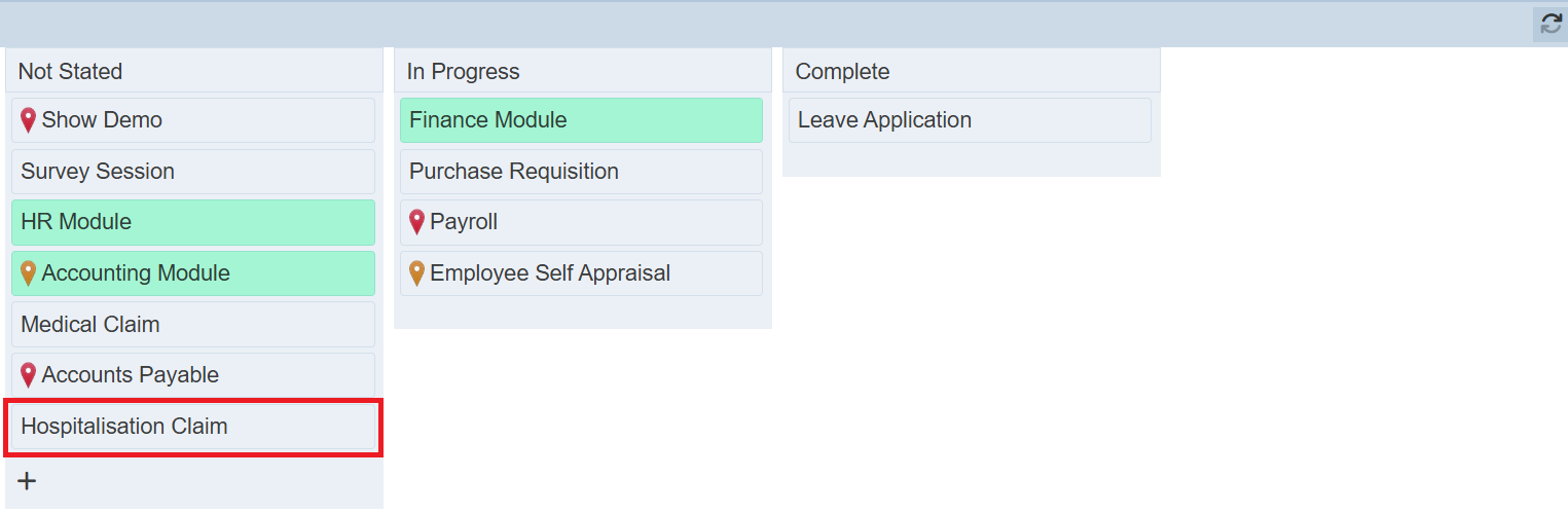 icon. Only the columns corresponding states with transitions linking from the Start state in the workflow will be able to add new Kanban items in the Kanban board.
