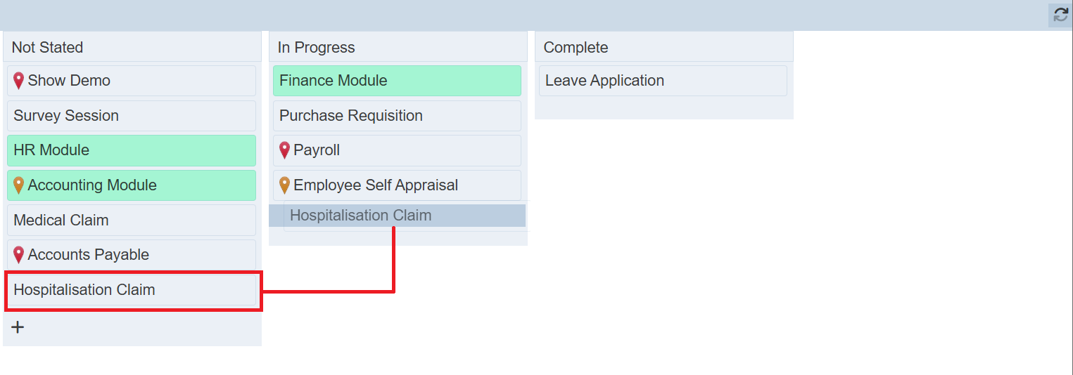 This means that a Kanban item can only move from “Not Started” column to the “In Progress” column. But you can move a Kanban item to and fro between “In Progress” column and the “Completed” column.