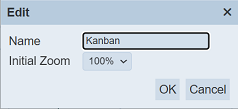 “More Actions” icon at the upper right corner of the page. Select the “Edit” option and the “Edit” dialog box will appear. Change the “Name” field to Kanban and click on the “OK” button to save the change.