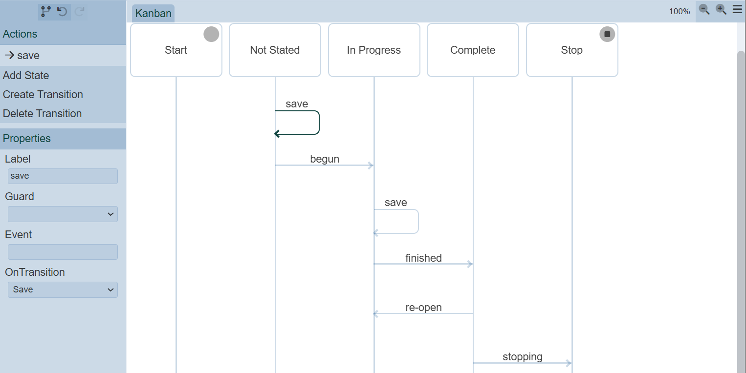 In this example, only “Not Started” state has a transition that links to the “Start” state.