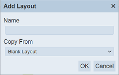 Key in an unique name for the new layout in the “Name” field. In the “Copy From” field, you can select either a blank layout or copy from an existing layout from the drop-down list. Click on the “OK” button to add the new layout. Click on the “Cancel” button to abort the action. If the name of the layout already exist, an error message will appear.