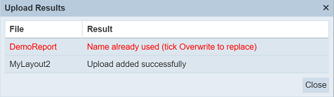If the layout to be uploaded is to overwrite an existing layout, select the “Overwrite” field before clicking on the “OK” button.