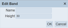 This action allows you to define the name and height of the band. The default value is 30 per row. If there is more than one row in the band, the height is the multiple of the number of rows.