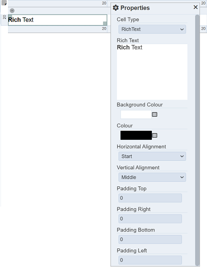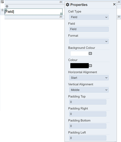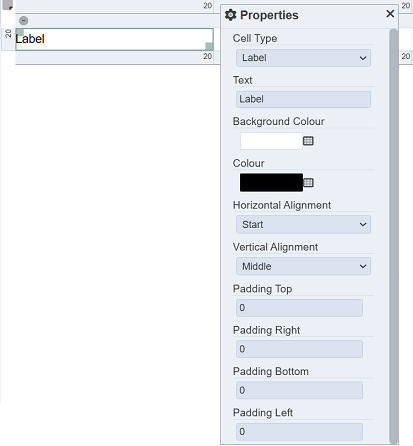 | Background Colour | Defines the background colour of the cell. | Colour palette | “White” |