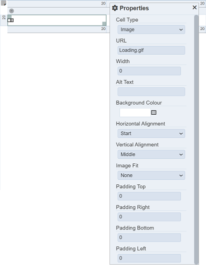 | Image Fit | Defines how the image is to fit in the cell. Options: - None <br.- Contain <br.- Cover - Fill |