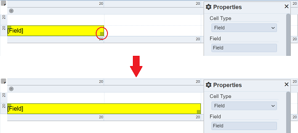 To edit a cell that has been added prior, simply click on the desired cell in the Layout Design Area. The selected cell will be highlighted with a grey box with 2 handles (one at the top left and another at the bottom right) and the “Properties” dialog box will appear.