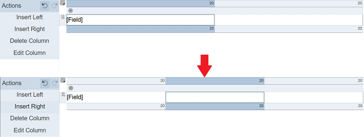 In the Actions Panel, click on “Insert Left” or “Insert Right” to insert a new column on the left or right side of the selected column respectively. In the example below, a column (highlighted in blue) is added on the right of the selected column.