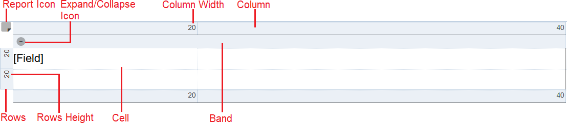 The Layout Design Area also includes two icons, the “Report” icon and the “Expand” or “Collapse” icon for the band.