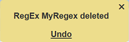 There is an “Undo” button to undo the deletion. Upon clicking on the “Undo” button, the deleted regex is restored and is added back to the list of regex. Do note that the notification will disappear after some time.