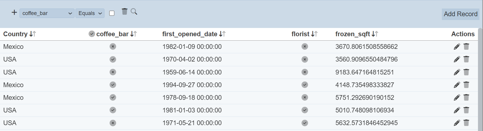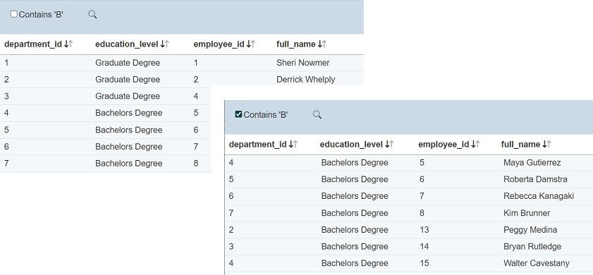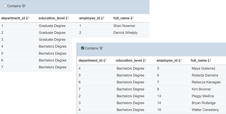 icon. All records with values that contains ‘B’ in the education_level field are displayed.