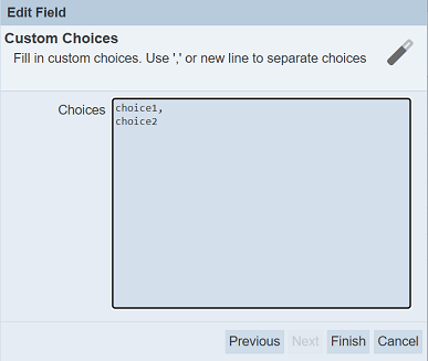 - Custom Choices - Enter own choices (separated by commas) in the “Choices” field