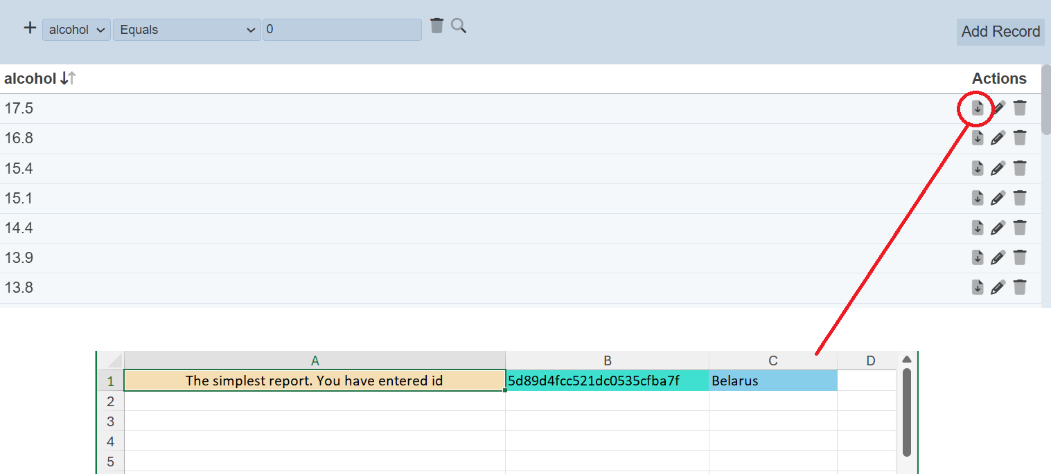 - Displays a “Render Report” icon for each row under the “Actions” column in the record editor