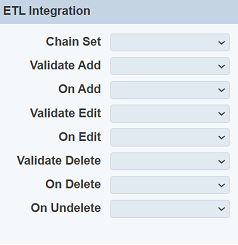 The ETL Integration section allows you to select the ETL chainset and select when the ETL is to be triggered.