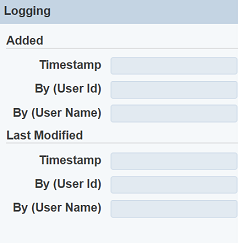 The Logging section consists of two portions, the Added portion and the Last Modified portion. These fields allow you to change or edit the timestamp, user ID and/or user name when the record editor is created and/or when the record editor is modified. They are optional fields.