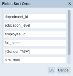 In “Fields Sort Order” dialog box, drag-and-drop the fields to their desired location. Click on the “OK” button to save the changes. Click on the “Cancel” button to abort.