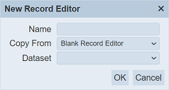 If an existing record editor is selected in the “Copy From” field, the “Dataset” field will use the property from the existing record editor and will not be available. If a blank record editor is selected in the “Copy From” field, select the dataset to be edited in the “Dataset” field.