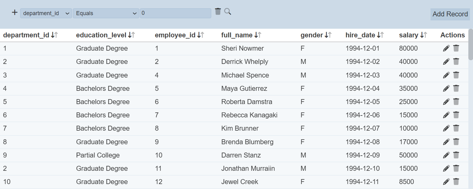 “Edit” icon under the “Actions” column corresponding the desired record desired.