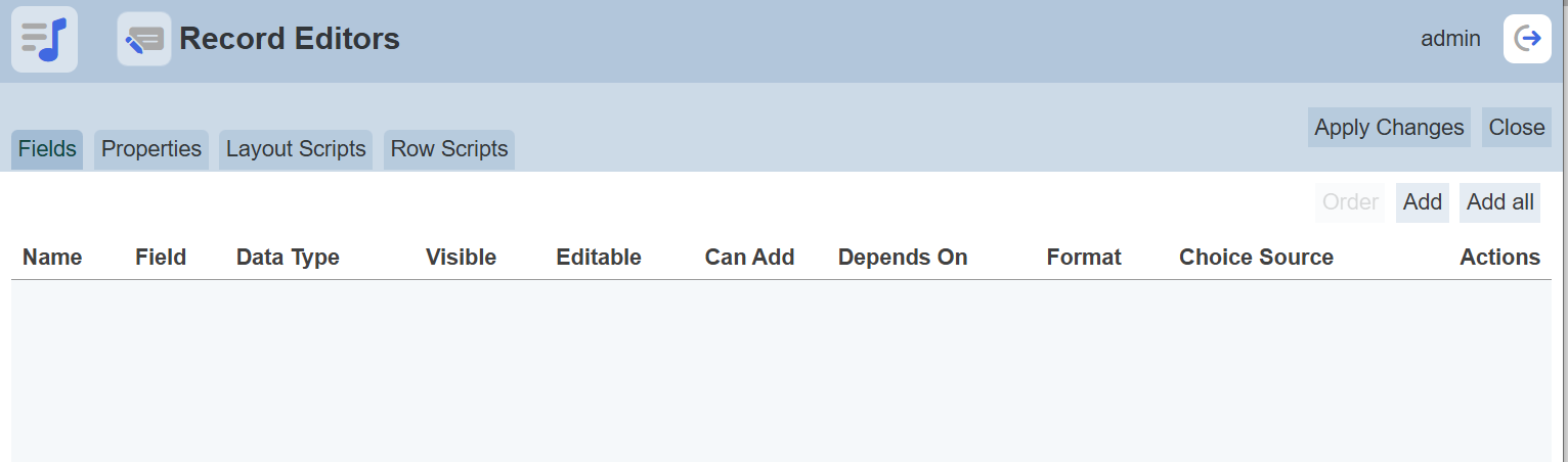 | Copy From | Copy from an existing record editor or create a new one. | Y | Drop-down list | Select from list | “Blank Record Editor” |