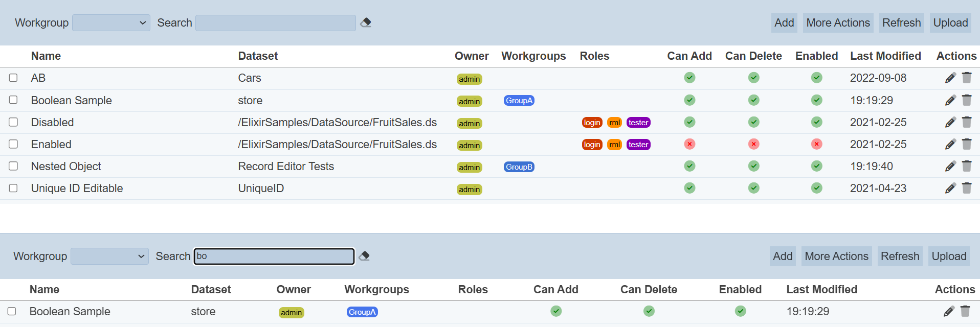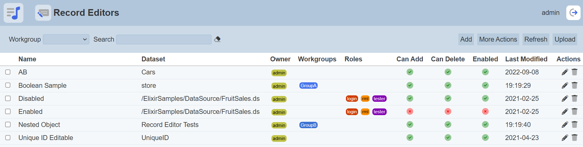 To enable or disable the record editors, click on the “More Actions” button and select the “Set Enabled True” or “Set Enabled False” option respectively.
