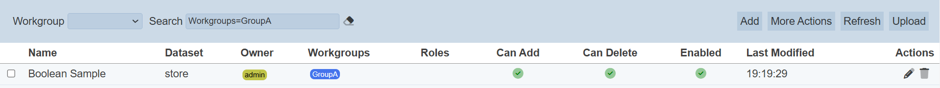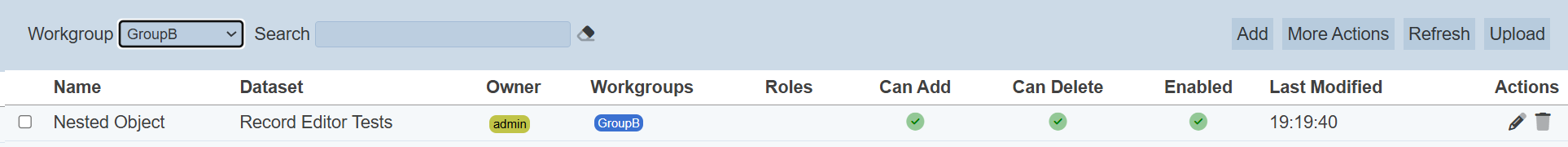 In the example above, record that is associated with the workgroup “GroupA” is shown.