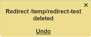 Upon clicking on the “Undo” button, the deleted redirect is restored and is added back to the list of redirects.