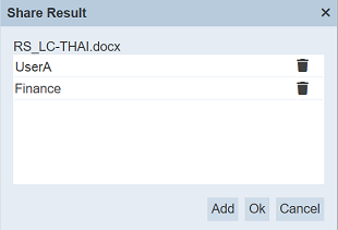 Click on the “Add” button in the “Share Result” dialog box to add more roles/users.