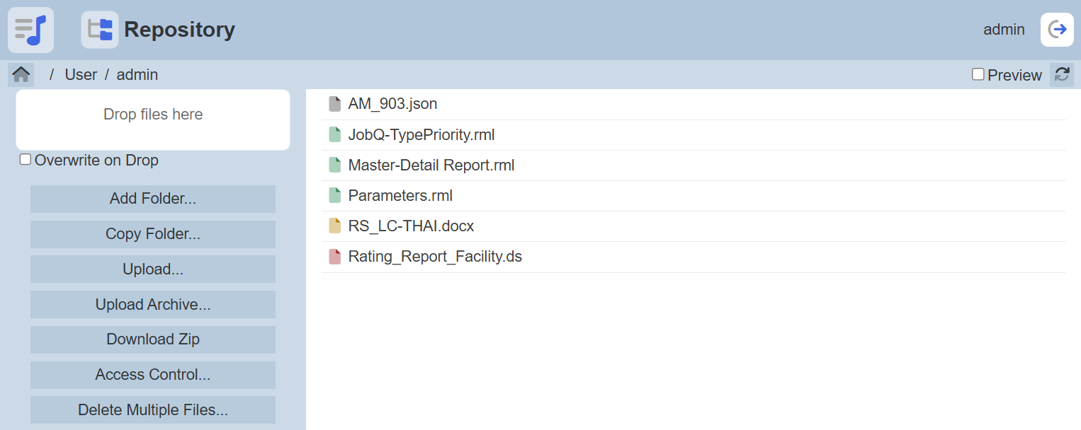 In the Repository module, there are two permanent folders, /User and /Temp. These folders cannot be deleted. By default, all users have read access to these two folders, while administrator has read and write access. Once you are given privilege to access the Repository module, a folder will be automatically created, using your username under the read-only /User folder. This folder cannot be deleted as well.