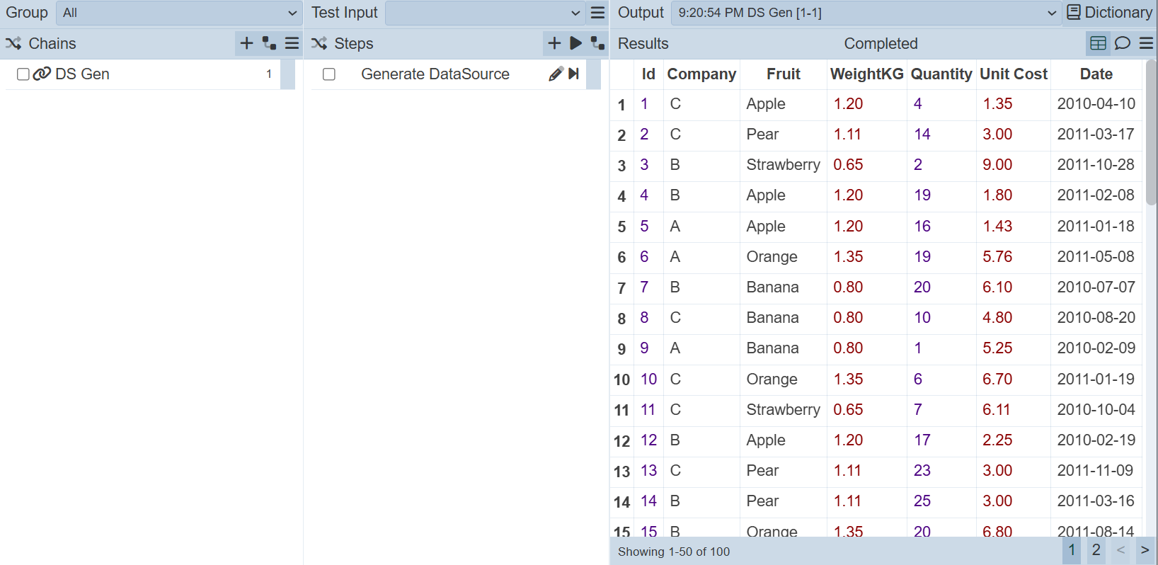 Using the ETL above, the ETL chainset generates and loads the DS.