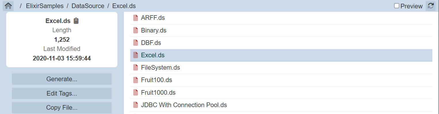 The user interface in the Repository module allows you to use the DS engine to convert the data into different types of file format. Currently JSON, XLSX and CSV format are supported.