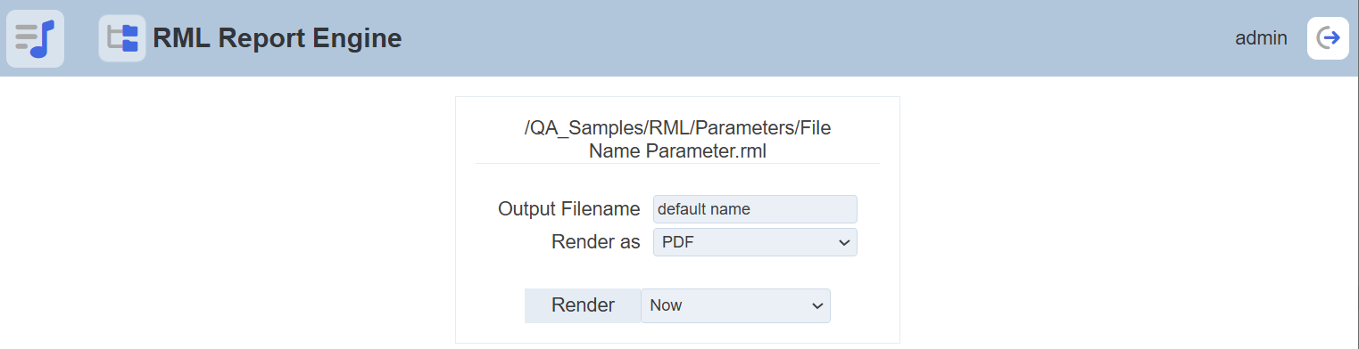 Do note that the output report uses the name of the report as its filename. Some reports may have the elx-filename parameter to allow user to dynamically define the name of the output report. Below is an example during rendering.